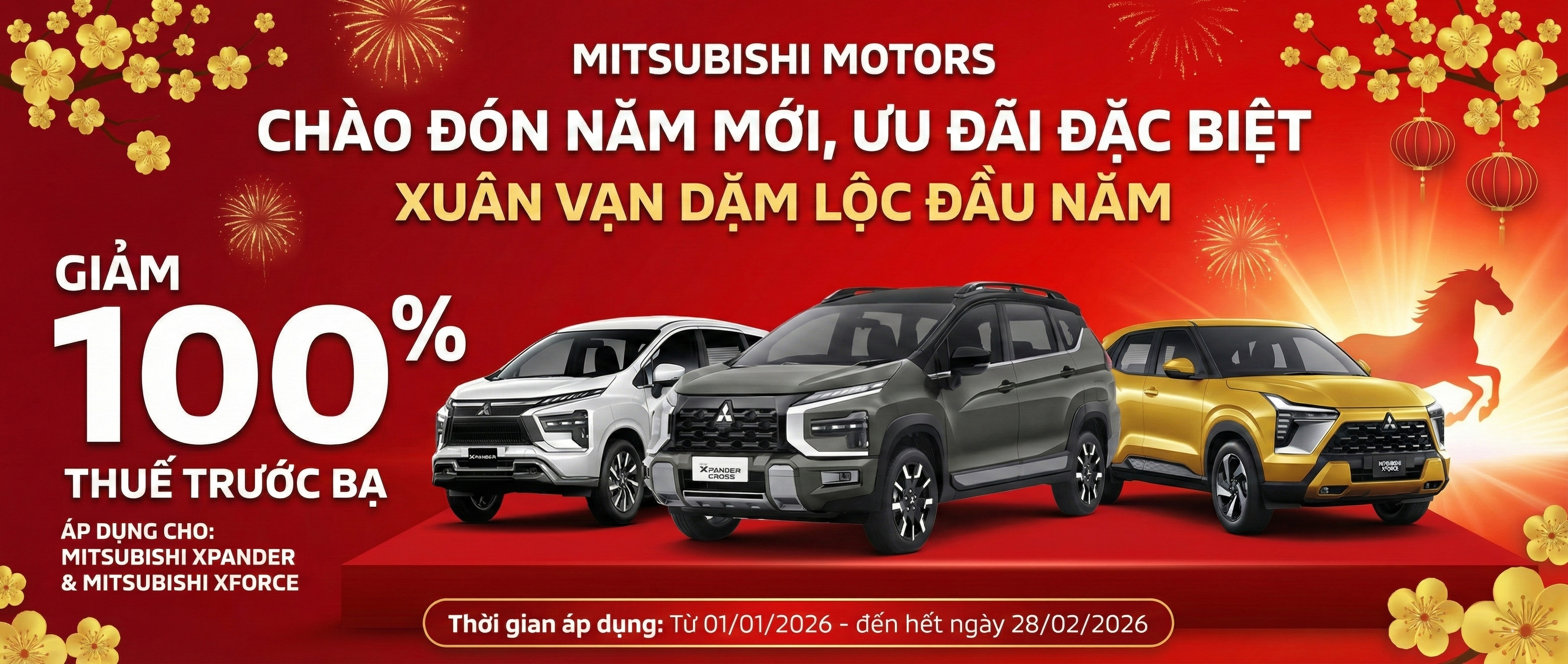 - Mitsubishi XPander Cross : Hỗ Trợ 100% phí trước bạ (~70 triệu VND), 01 năm bảo hiểm vật chất (trị giá 9.000.000 VNĐ)